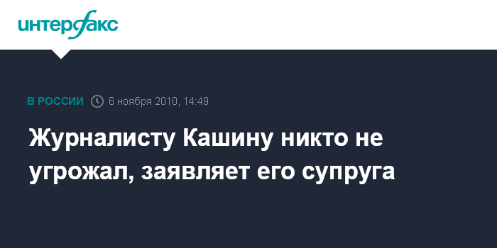Журналисту Кашину никто не угрожал, заявляет его супруга