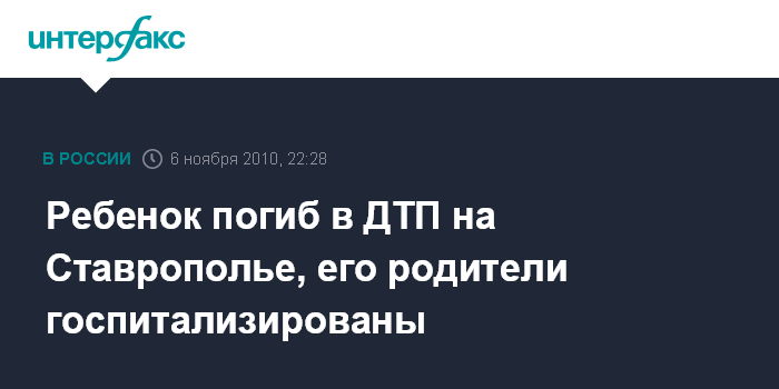 Ставрополь. 6 ноября. ИНТЕРФАКС-ЮГ - В Ставропольском крае в результате столкновения двух автомобилей погиб маленький ребенок, еще два человека получили ранения.