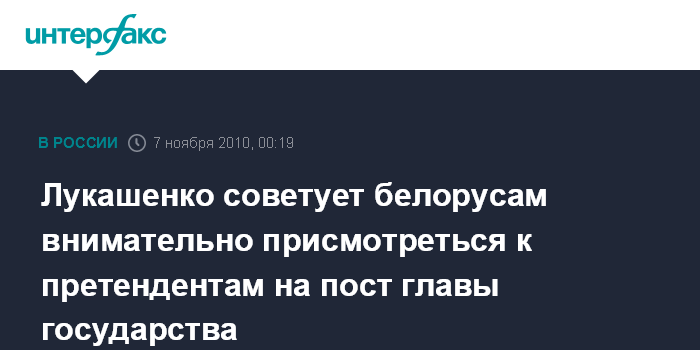 Могилев. 6 ноября. ИНТЕРФАКС-ЗАПАД - Президент Белоруссии Александр Лукашенко посоветовал белорусским избирателям принять осознанное решение на предстоящих президентских выборах, внимательно присмотревшись к претендентам на пост главы государства.