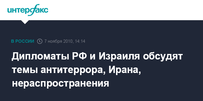 Дипломаты РФ и Израиля обсудят темы антитеррора, Ирана, нераспространения