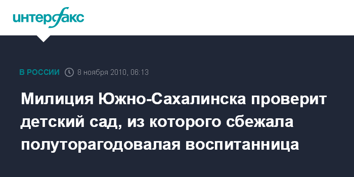 Южно-Сахалинск. 8 ноября. ИНТЕРФАКС-ДАЛЬНИЙ ВОСТОК - УВД Южно-Сахалинска по поручению прокуратуры проверит обстоятельства инцидента с обнаружением на улице города раздетой маленькой девочки.