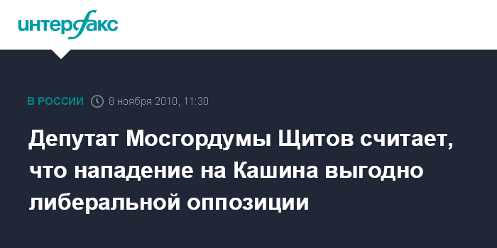 Депутат Мосгордумы Щитов считает, что нападение на Кашина выгодно либеральной оппозиции