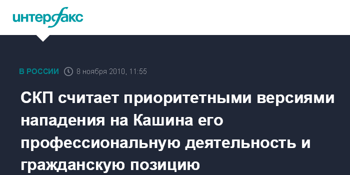 Москва. 8 ноября. INTERFAX.RU - Следствие отрабатывает различные версии нападения на журналиста газеты "Коммерсант" Олега Кашина, приоритетной является его профессиональная деятельность, сообщил "Интерфаксу" официальный представитель СКП РФ Владимир Маркин.