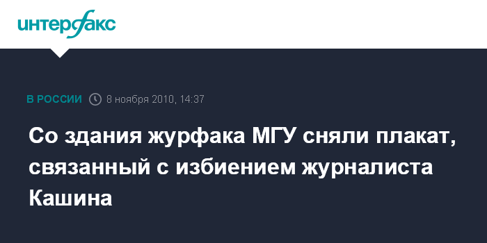 Со здания журфака МГУ сняли плакат, связанный с избиением журналиста Кашина