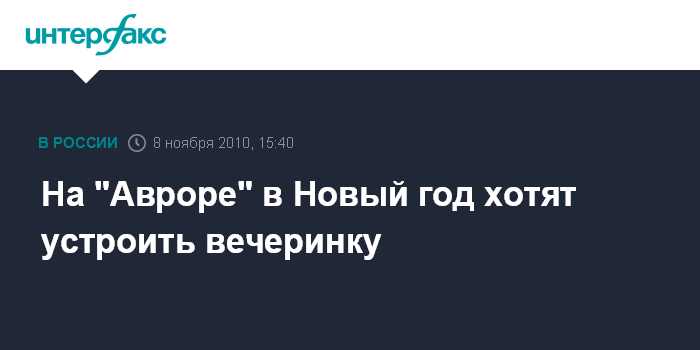 Санкт-Петербург. 8 ноября. INTERFAX.RU - Чиновникам и бизнесменам в Москве и Петербурге предлагают купить билеты на новогоднюю вечеринку на крейсере "Авроре", выводимом из состава Военно-морского флота РФ, сообщил "Интерфаксу" в понедельник член оргкомитета Нахимовского Морского собрания Михаил Богданов.