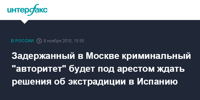 Задержанный в Москве криминальный "авторитет" будет под арестом ждать решения об экстрадиции в Испанию