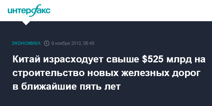 Замминистра финансов КНР Ли Юн ранее заявлял, что к 2015 году планируется довести общую протяженность железнодорожных линий страны до 120 тыс. километров, них 30 тыс. километров будут поострены за ближайшее пятилетие.