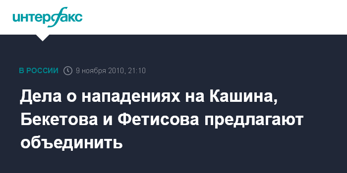 Дела о нападениях на Кашина, Бекетова и Фетисова предлагают объединить