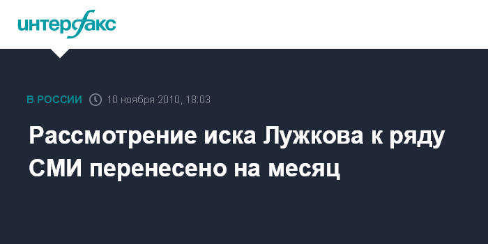 Рассмотрение иска Лужкова к ряду СМИ перенесено на месяц