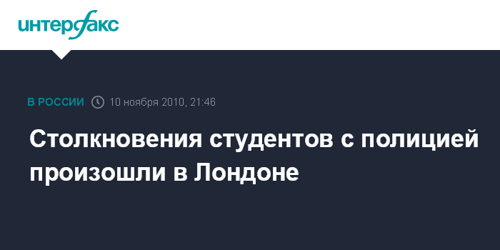 Лондон. 10 ноября. INTERFAX.RU - Протесты британских студентов в Лондоне против повышения стоимости образовательных услуг вылились в столкновения с полицией, сообщает в среду BBC.