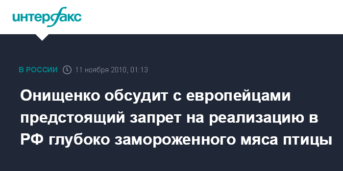 Ранее он сообщил, что с 1 января 2011 года вступают в силу новые правила, которые вводят полный запрет на использование в переработке и реализации в розничных сетях глубоко замороженного мяса птицы. Оно должно реализовываться в охлажденном виде.