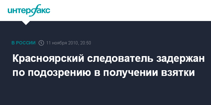 Красноярский следователь задержан по подозрению в получении взятки