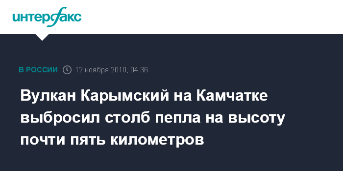 Петропавловск-Камчатский. 12 ноября. ИНТЕРФАКС-ДАЛЬНИЙ ВОСТОК - Вулкан Карымский, извергающийся на Камчатке, выбросил несколько столбов пепла с газом на высоту до 4 тыс. 900 метров над уровнем моря.