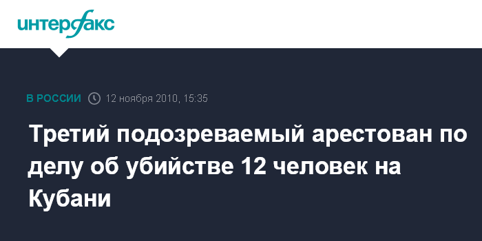 Третий подозреваемый арестован по делу об убийстве 12 человек на Кубани