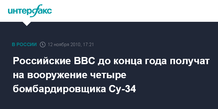 Российские ВВС до конца года получат на вооружение четыре бомбардировщика Су-34