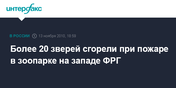 Берлин. 13 ноября. INTERFAX.RU - В зоопарке города Карлсруэ на западе ФРГ во время пожара погибли 26 животных, сообщает немецкая газета Bild.