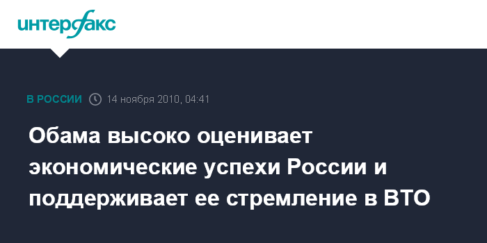 Обама высоко оценивает экономические успехи России и поддерживает ее стремление в ВТО