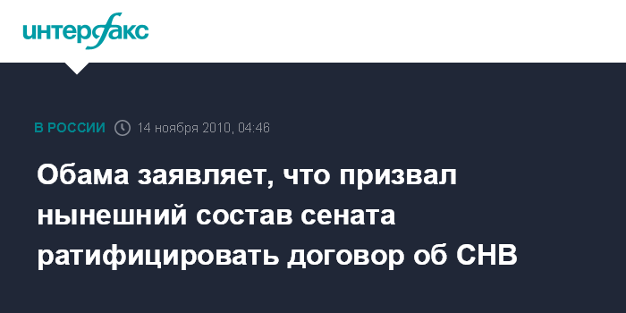 Обама заявляет, что призвал нынешний состав сената ратифицировать договор об СНВ