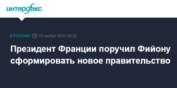 Париж. 15 ноября. INTERFAX.RU - Президент Франции Николя Саркози поручил Франсуа Фийону сформировать новое правительство страны.