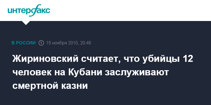 Жириновский считает, что убийцы 12 человек на Кубани заслуживают смертной казни