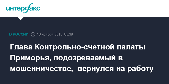 Глава Контрольно-счетной палаты Приморья, подозреваемый в мошенничестве, вернулся на работу