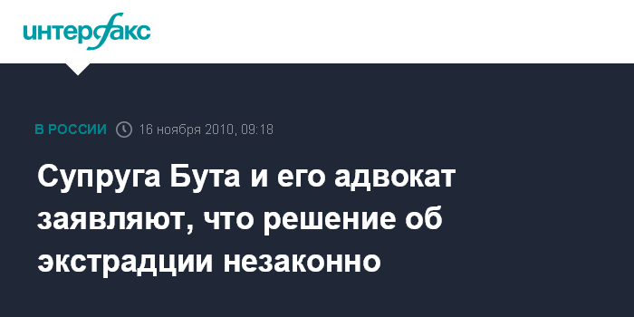 Супруга Бута и его адвокат заявляют, что решение об экстрадции незаконно