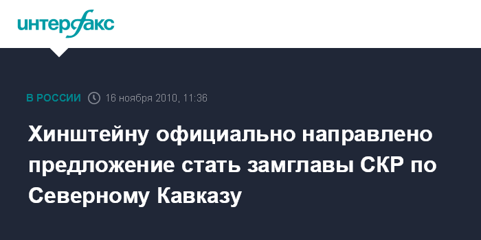 Хинштейну официально направлено предложение стать замглавы СКР по Северному Кавказу