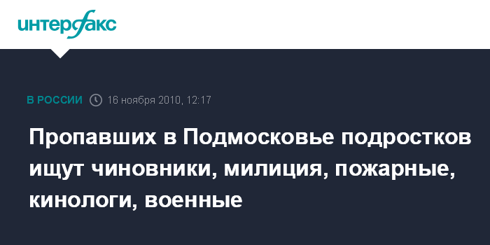 Москва. 16 ноября. INTERFAX.RU - В Подмосковье милиция, МЧС, военные и добровольцы ищут подростка и ребенка, пропавших в районе Красногорска, сообщил "Интерфаксу" во вторник начальник Управления информации и общественных связей ГУВД Московской области Евгений Гильдеев.