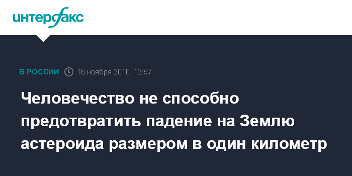Шустов также сообщил, что на Земле пока не существует технических средств, способных противодействовать падению астероида размером в один километр.