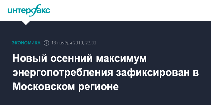 Москва. 16 ноября. INTERFAX.RU - Специалисты ОАО "Московская объединенная электросетевая компания" (МОЭСК) 10 ноября зафиксировали новый осенний максимум потребления электроэнергии в Московском регионе.