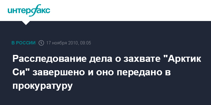 Расследование дела о захвате "Арктик Си" завершено и оно передано в прокуратуру