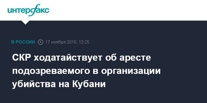 СКР ходатайствует об аресте подозреваемого в организации убийства на Кубани