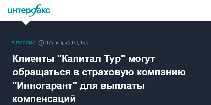 Клиенты "Капитал Тур" могут обращаться в страховую компанию "Инногарант" для выплаты компенсаций