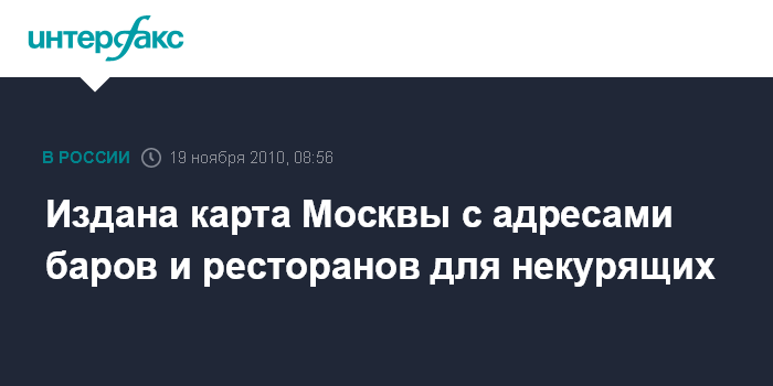 Издана карта Москвы с адресами баров и ресторанов для некурящих