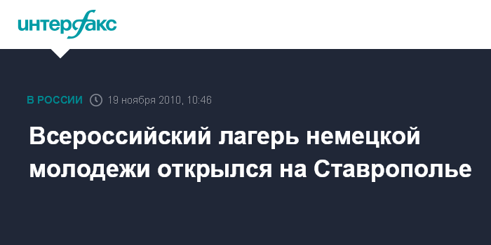 Ставрополь. 19 ноября. INTERFAX.RU - В Кисловодске (Ставропольский край) на текущей неделе открылся первый всероссийский лагерь немецкой молодежи "Авангард будущего".