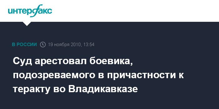Суд арестовал боевика, подозреваемого в причастности к теракту во Владикавказе