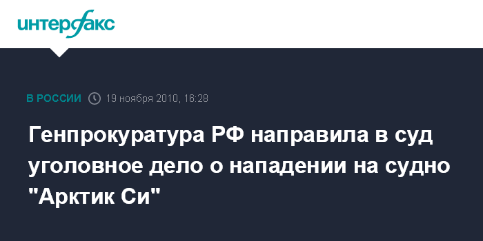 Генпрокуратура РФ направила в суд уголовное дело о нападении на судно "Арктик Си"