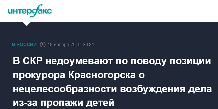 В СКР недоумевают по поводу позиции прокурора Красногорска о нецелесообразности возбуждения дела из-за пропажи детей