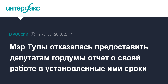 Мэр Тулы отказалась предоставить депутатам гордумы отчет о своей работе в установленные ими сроки