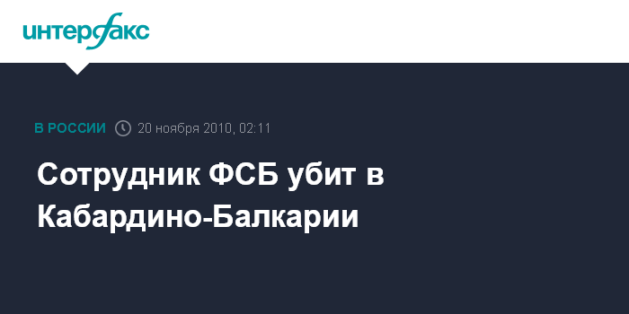 Нальчик. 20 ноября. ИНТЕРФАКС-ЮГ - Покушение на сотрудника районного отдела УФСБ совершено в Кабардино-Балкарии, сообщил агентству "Интерфакс-Юг" источник в правоохранительных органах республики.