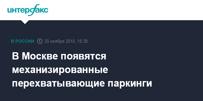 Москва. 20 ноября. INTERFAX.RU - Московские власти планируют разместить более 100 перехватывающих паркингов в центральной части города в течение следующего года, заявил и.о. руководителя департамента дорожно-мостового и инженерного строительства Александр Левченко. По его словам, такие механизированные парки занимают площадь 11х11 метров, а вмещают до 50 автомобилей.