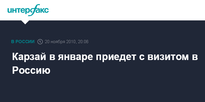 Лиссабон. 20 ноября. ИНТЕРФАКС - Президент Афганистана Хамид Карзай посетит Москву по приглашению российского лидера Дмитрия Медведева 21 января.