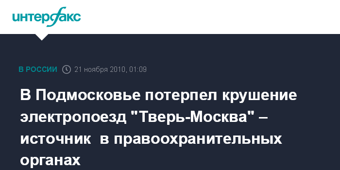 В Подмосковье потерпел крушение электропоезд "Тверь-Москва" – источник в правоохранительных органах