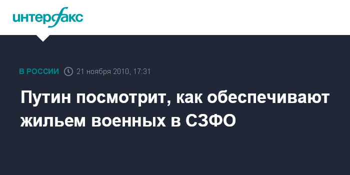 Путин посмотрит, как обеспечивают жильем военных в СЗФО
