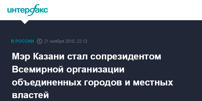 Мэр Казани стал сопрезидентом Всемирной организации объединенных городов и местных властей