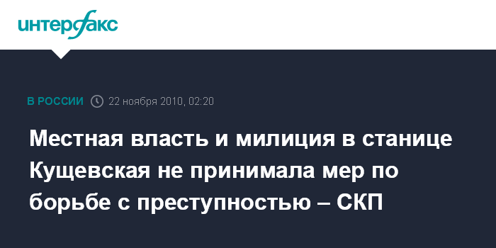 Местная власть и милиция в станице Кущевская не принимала мер по борьбе с преступностью – СКП