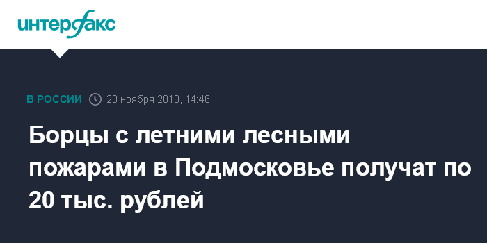 Красногорск. 23 ноября. INTERFAX.RU - Сотрудники МЧС, военнослужащие и другие граждане, принимающие участие в тушении лесных пожаров в Подмосковье летом текущего года, получат единовременную выплату в размере 20 тыс. рублей, заявила во вторник на заседании правительства Московской области министр социальной защиты населения Валентина Лагункина.