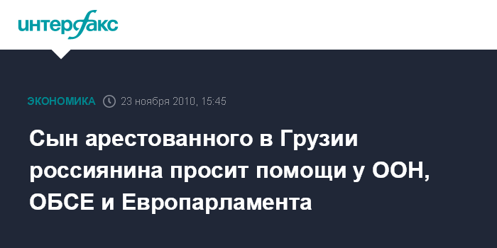 Сын арестованного в Грузии россиянина просит помощи у ООН, ОБСЕ и Европарламента