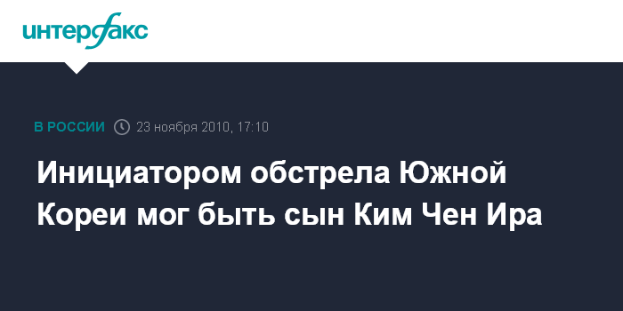 Сидней. 23 ноября. INTERFAX.RU - Обстрел южнокорейского острова Йонпхендо, проведенный КНДР, мог быть организован вероятным наследником северокорейского лидера Ким Чен Ира - его младшим сыном Ким Чен Уном, пишет во вторник австралийская газета Sidney Morning Herald со ссылкой на китайского эксперта.