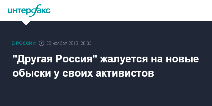 Москва. 23 ноября. INTERFAX.RU - Активисты оппозиционной коалиции "Другая Россия" заявляют, что в Смоленске милиция провела обыски в квартире члена "Другой России" Сергея Фомченкова.